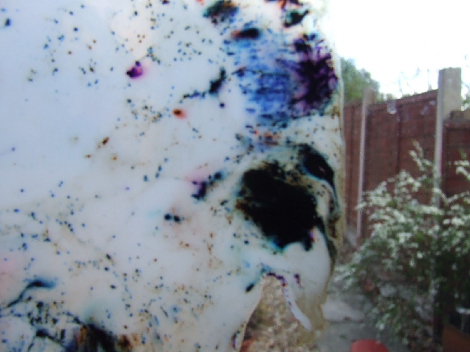 The rest of the photos are of PVA mixed with brush on. This is the best effect I've created, in my opinion. I love how you can see how the colours have separated into smaller pigments and how they sort of swish and swirl together.
